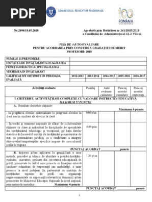 (2) personalul didactic pensionat nu mai beneficiaza de gradatie de merit de la. Documente justificative, grupate pe criteriişi subcriteriile din fişa de (auto)evaluare pentru gradație de merit elaborată de i.s.j constanța,la categoria de personal didactic la care candidează, certificate conform. Gradații de merit 2019 metodologie și criterii de acordare a gradației de merit din invățămantul preuniversitar. Download & view a12 grila gradatie de merit 2017 as pdf for free. Lista finala gradatie merit 2018.