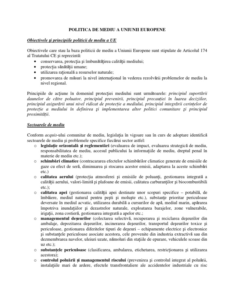 Politica De Mediu A Uniunii Europene