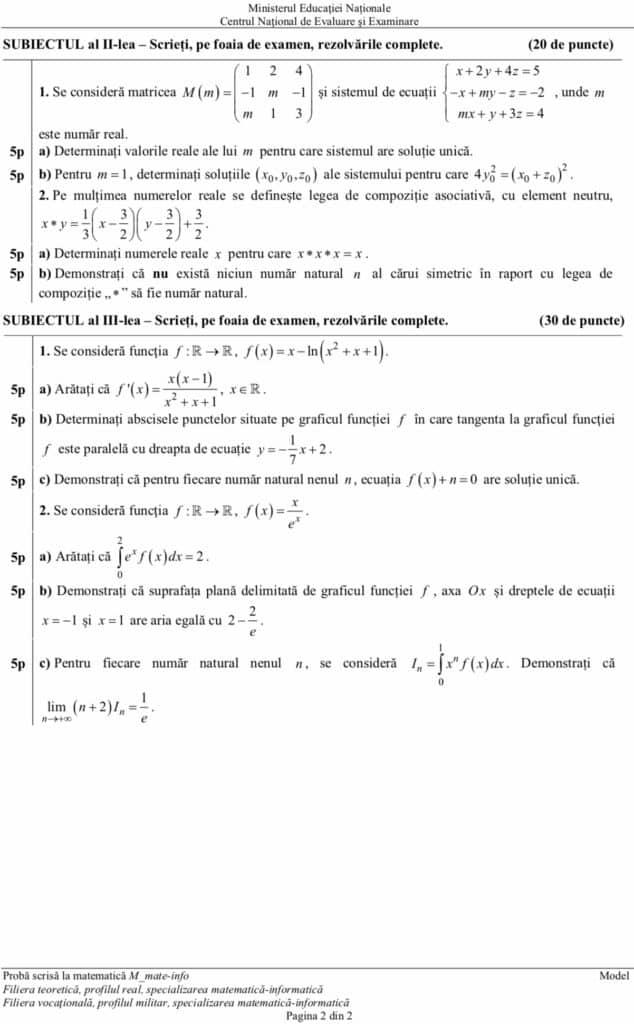 Simulare bacalaureat la matematica stiintele naturii 2019. Simulare bac matematica clasa 11: